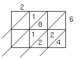 3. Find the missing values in the lattice multiplication problem shown below. Then find the product. (6 points)